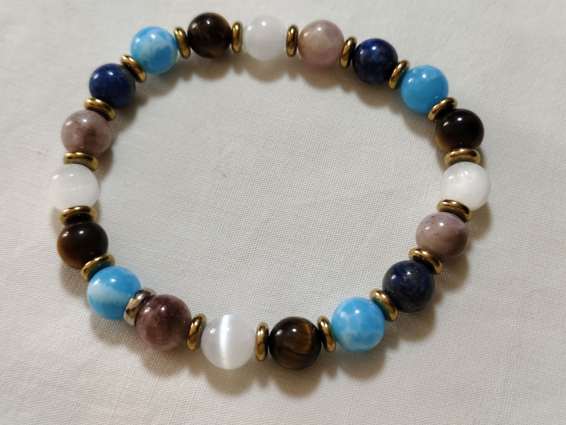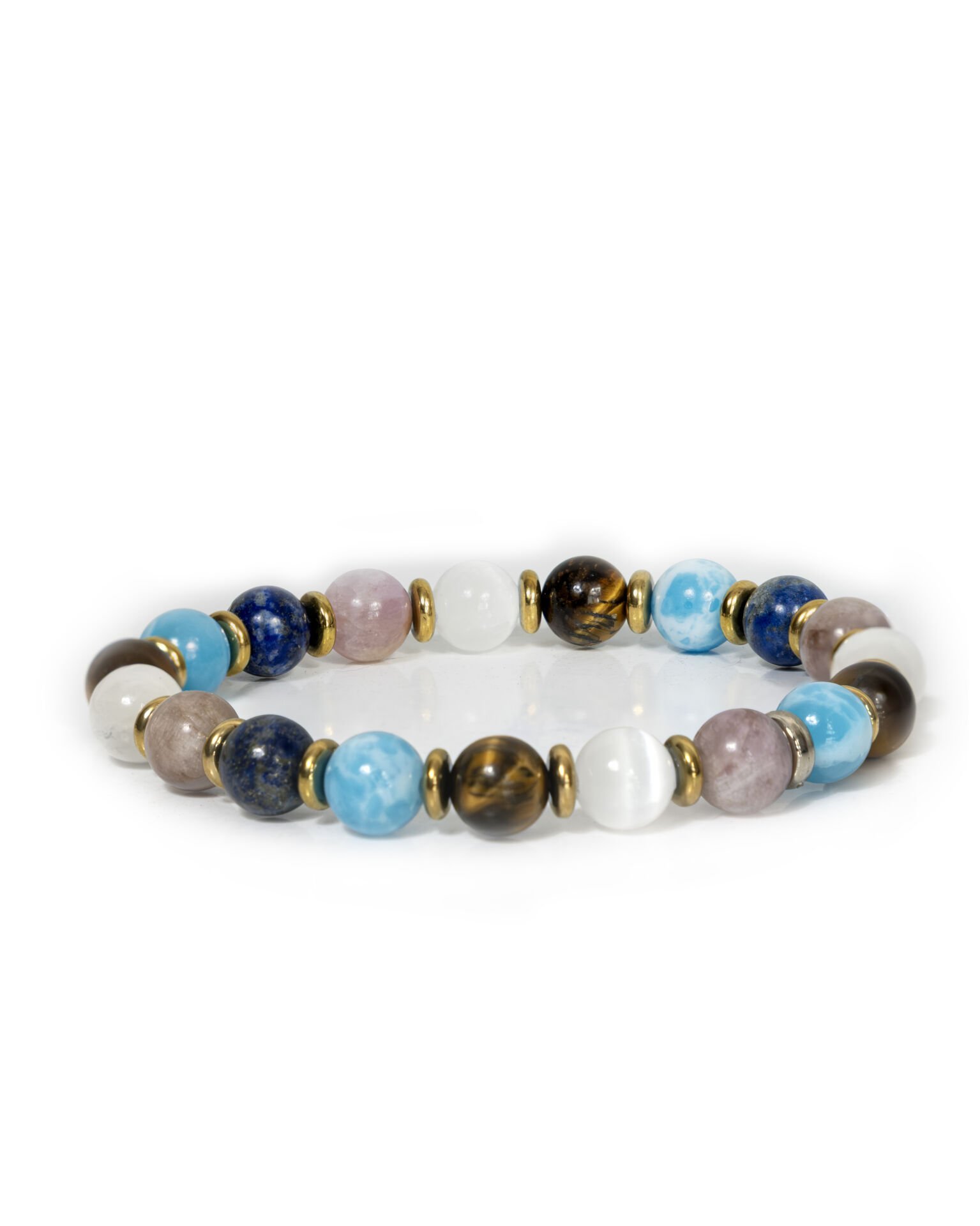 Boğa burcu için özel olarak tasarlanan bu doğal taş bileklik; Selenit, Kaplan Gözü ve Varisit taşlarının güçlü enerjilerini bir araya getirir.