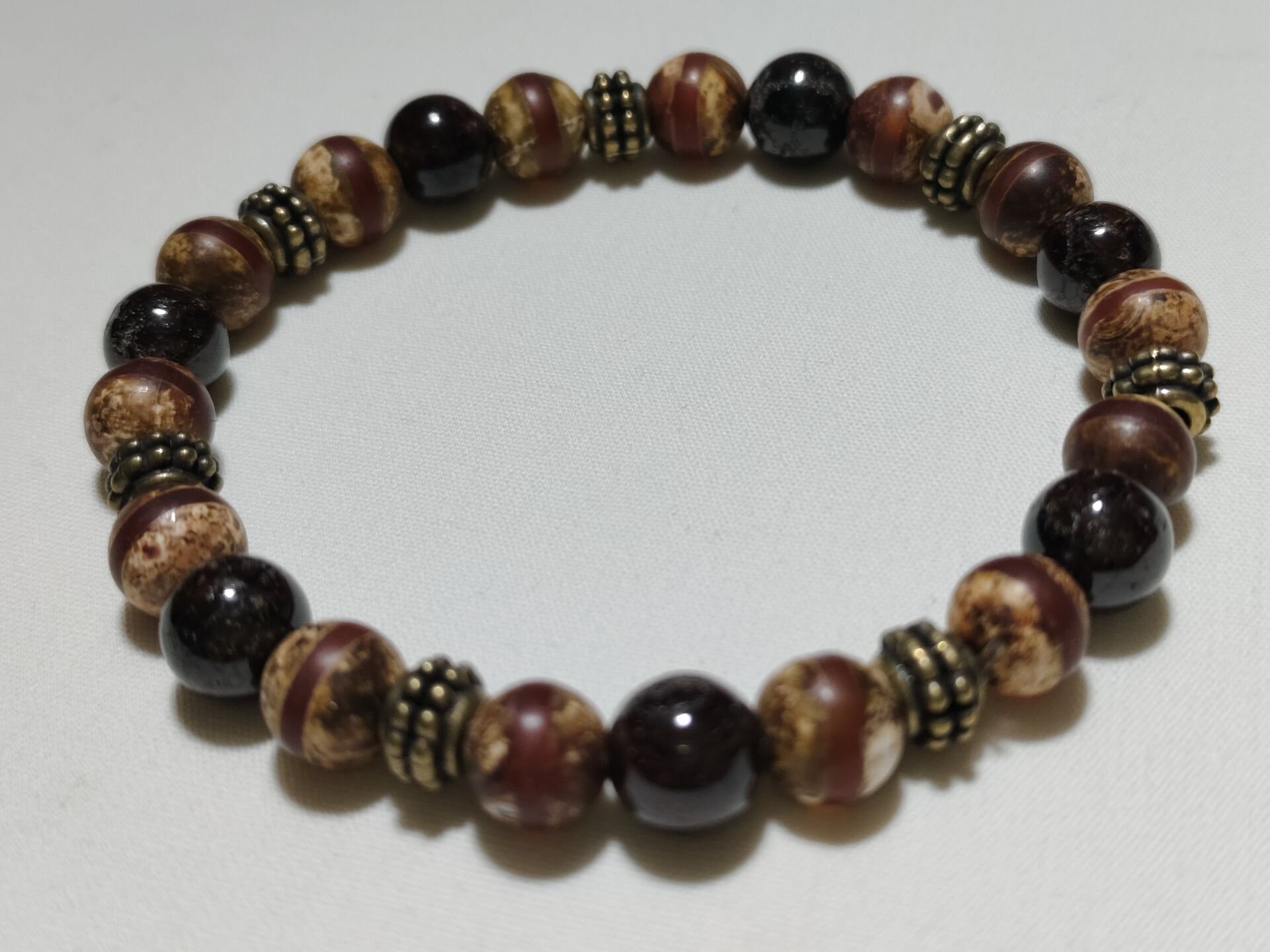 Tibet Akik & Lal (Garnet) Doğal Taş Bileklik – Enerji, Denge ve Koruma