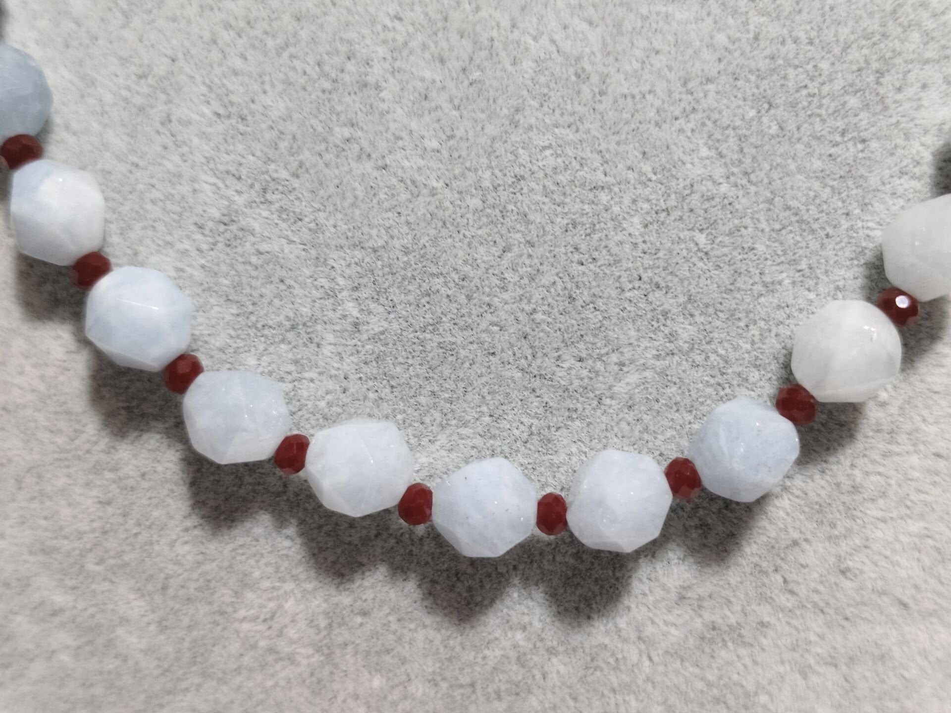 HEGZAGONAL KESİM AKUAMARİN VE LAL TAŞI BAYAN DOĞAL TAŞ KOLYE