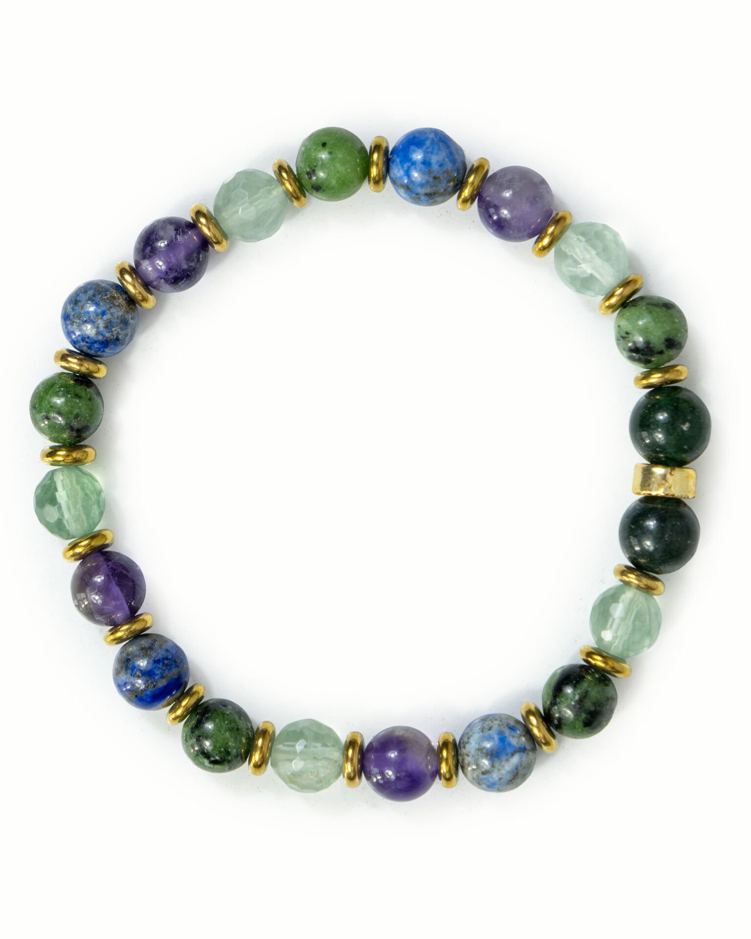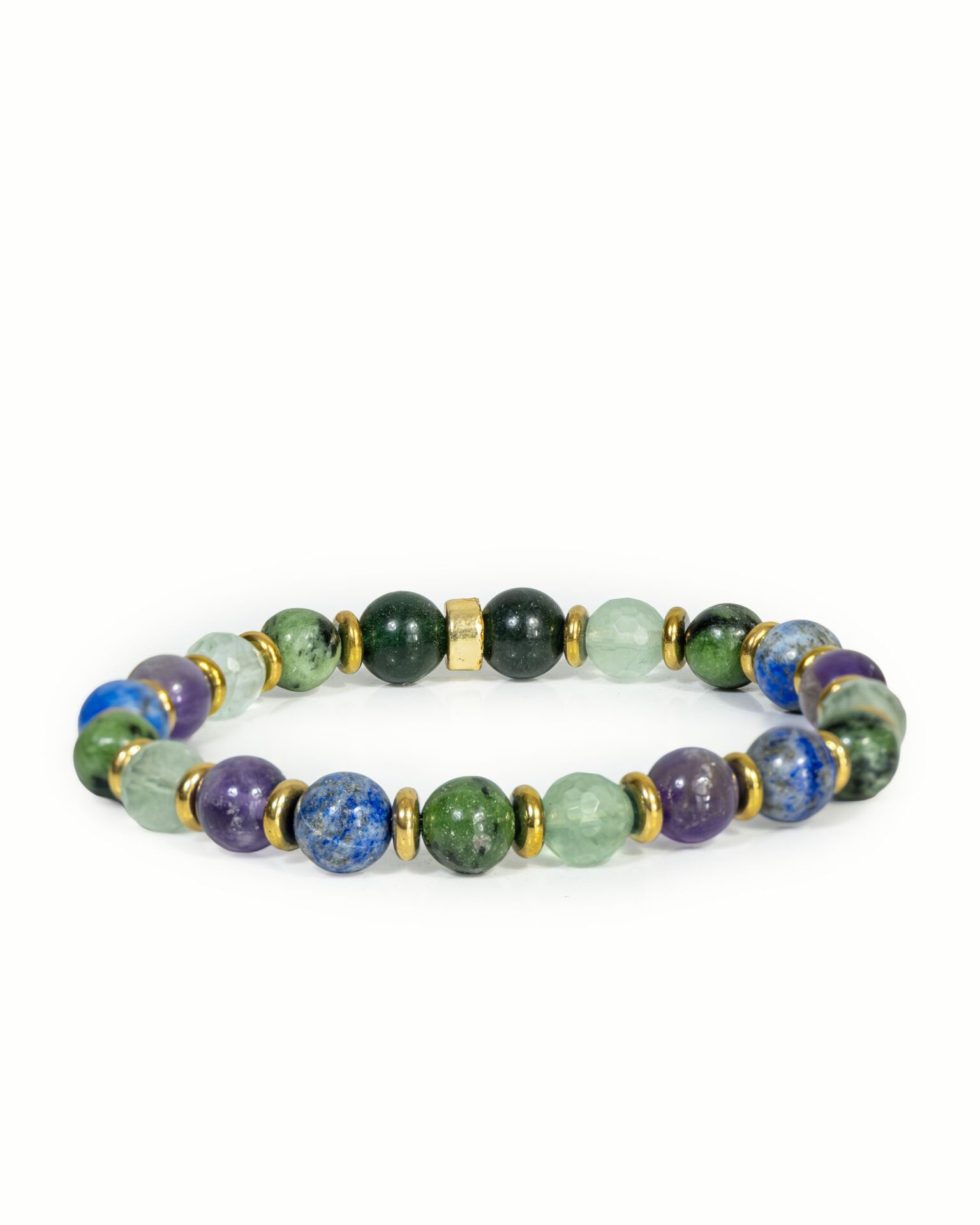 Kanada Yeşim, Anyolit Zümrüt, Florit, Ametist ve Lapis Lazuli Doğal Taş Bileklik
