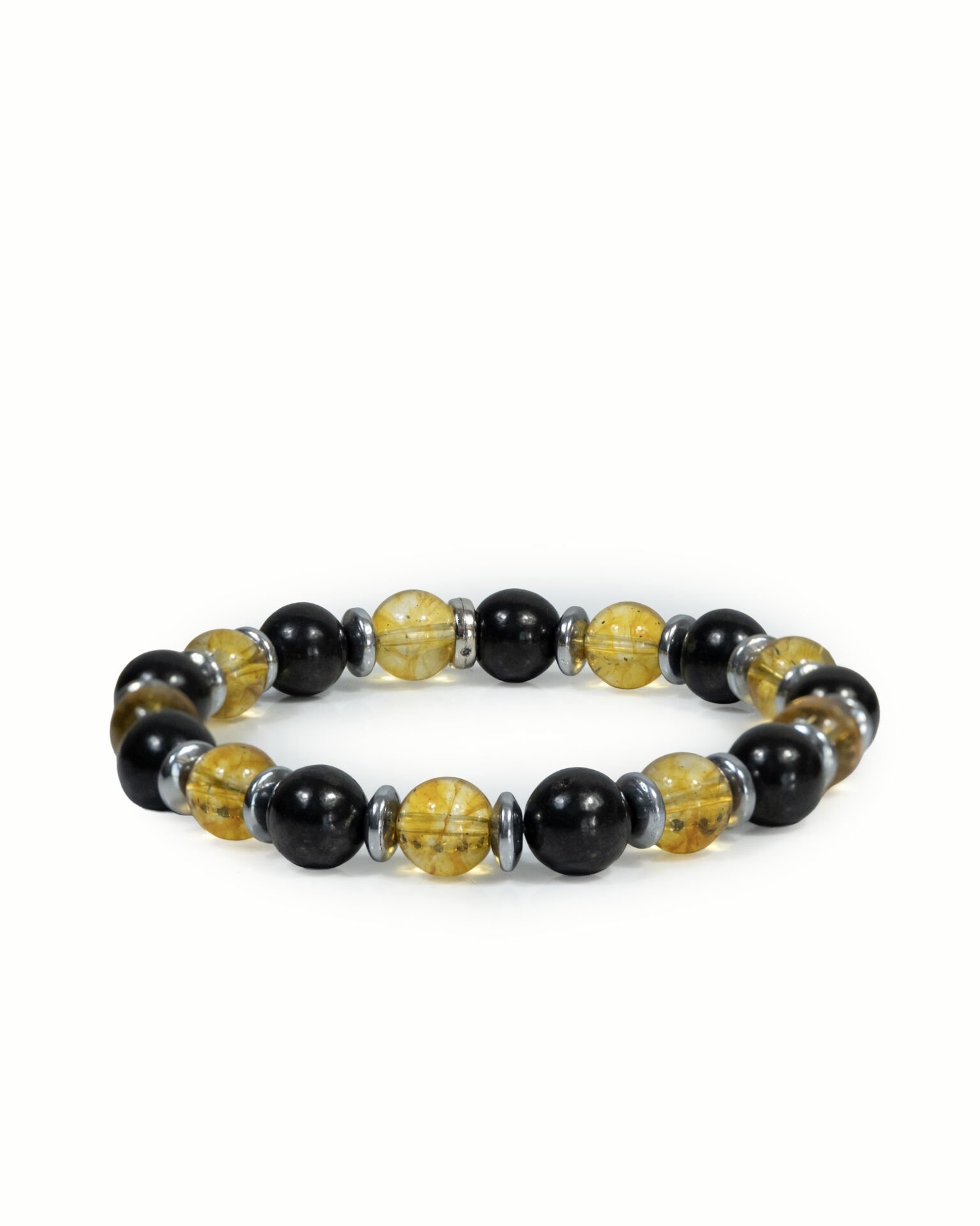 Sitrin & Sungit doğal taş bileklik, hem kadın hem de erkek kullanımına uygun olarak tasarlanmıştır. Şık ve modern görünümüyle tarzınızı tamamlarken, güçlü enerjisiyle ruhsal denge ve pozitif titreşimleri daima yanınızda taşımanıza yardımcı olur.