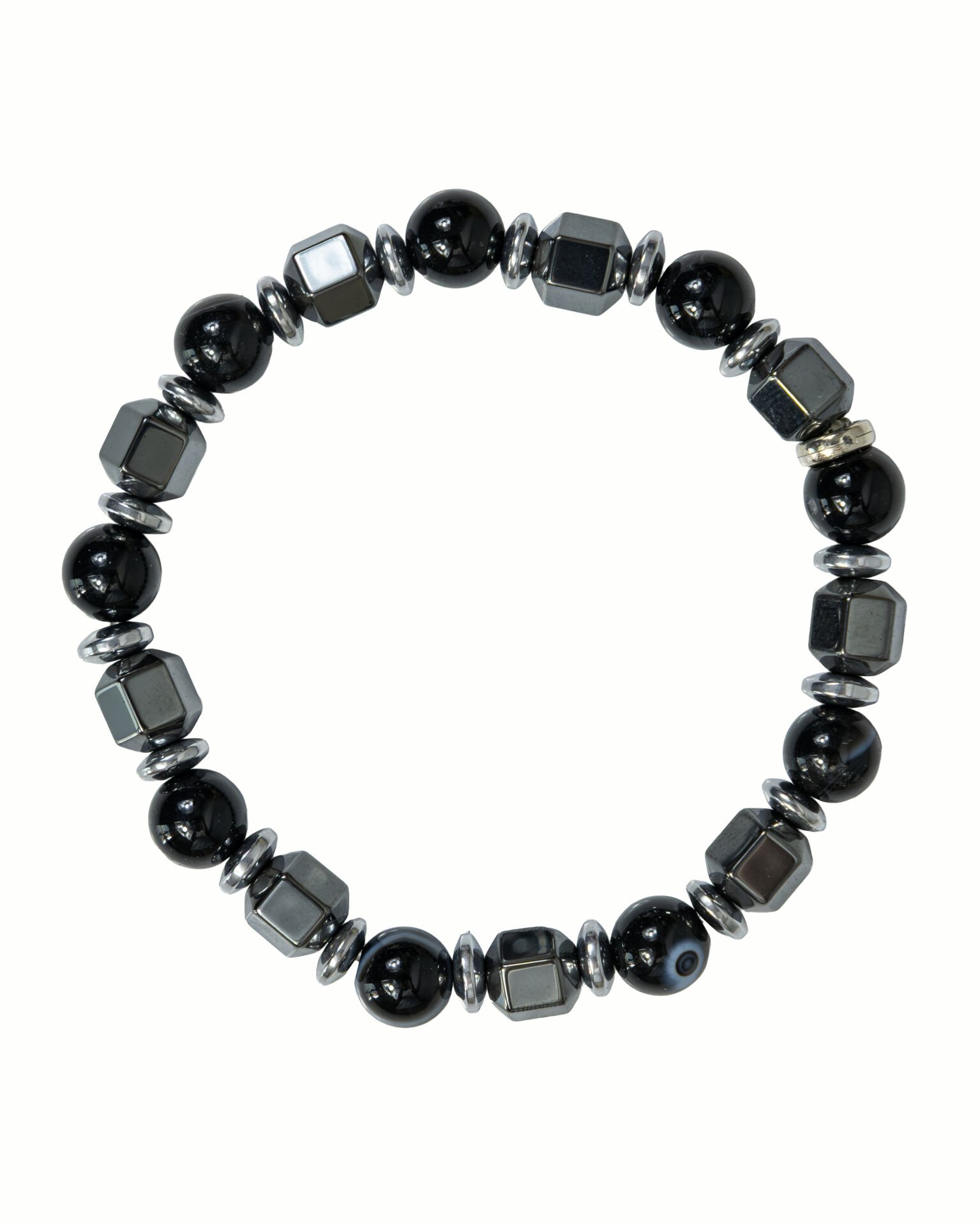 Erkeklere özel olarak tasarlanan bu doğal taş bileklik, Sungit ve Hematit taşlarının şifalı enerjilerini bir araya getirerek hem şık bir aksesuar hem de ruhsal koruma sağlar. Günlük kullanımda stilinizi tamamlayacak aynı zamanda enerjinizi dengeleyecek mistik bir seçimdir.
