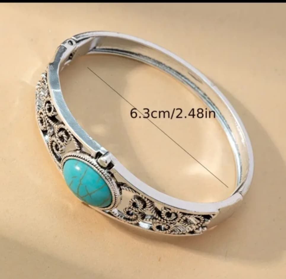 TURKUAZ TAŞI BAYAN BİLEKLİK (METAL KORDON ZAMAK ALAŞIM DÖKÜMDÜR BİLEKLİK AĞIRLIĞI 50 GR. )