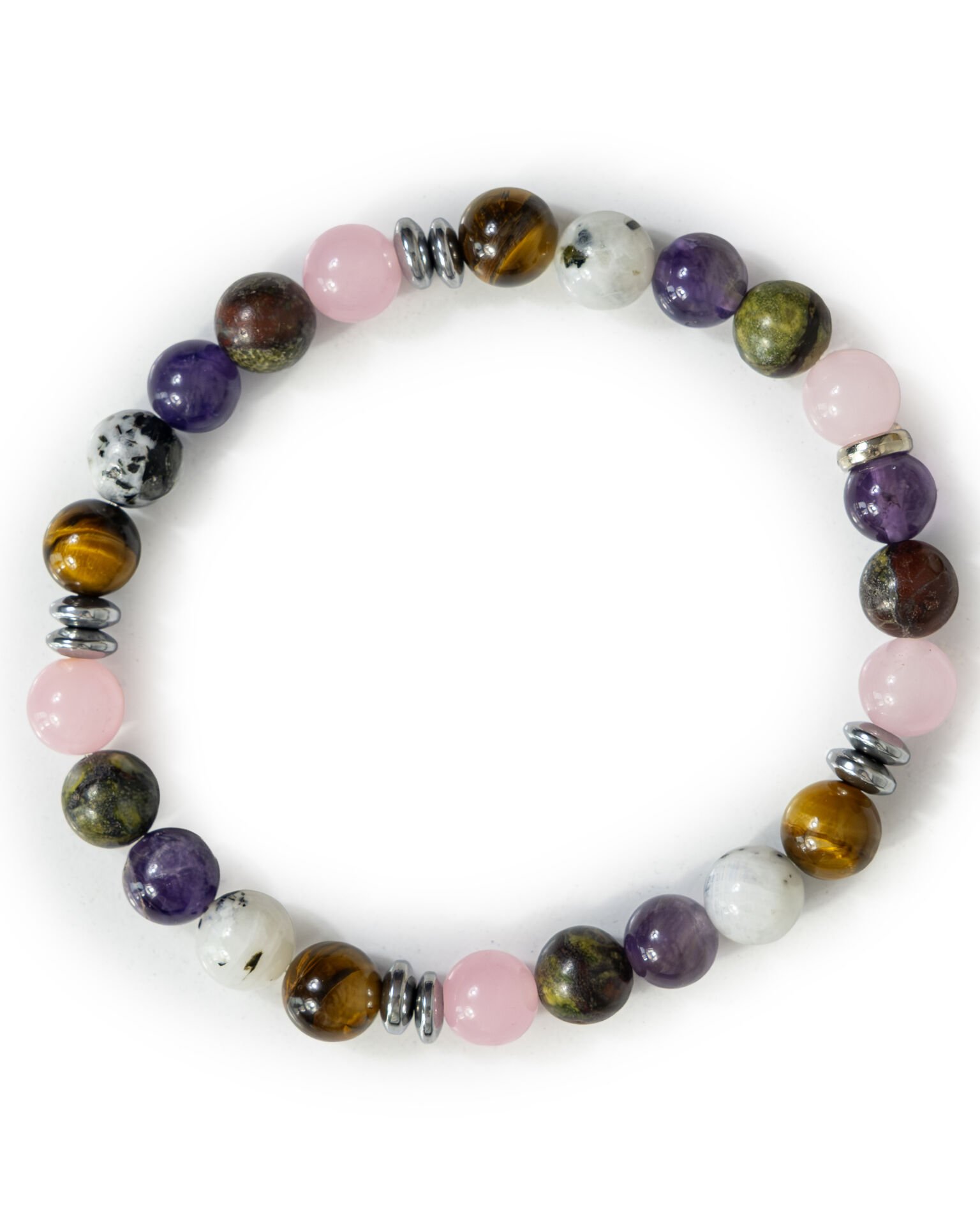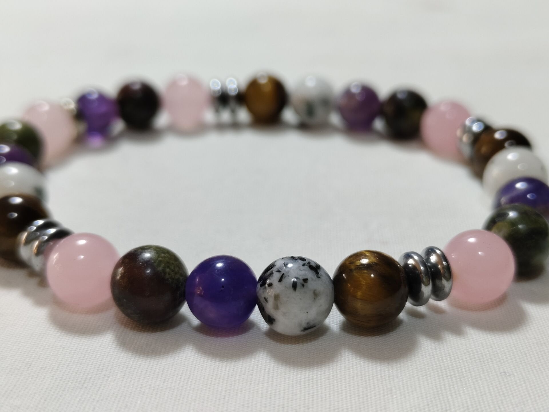 Ametist: Zihni sakinleştirir, meditasyonu destekler ve negatif enerjiyi dönüştürür. Stres ve kaygıyı azaltır, uykuyu iyileştirir.